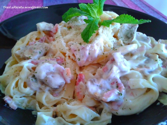 tallarines con salsa Alfredo