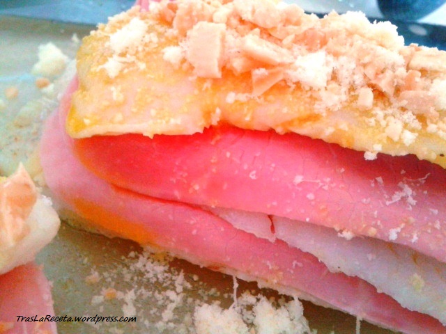 montaditos gratinados de merluza, jamón y queso
