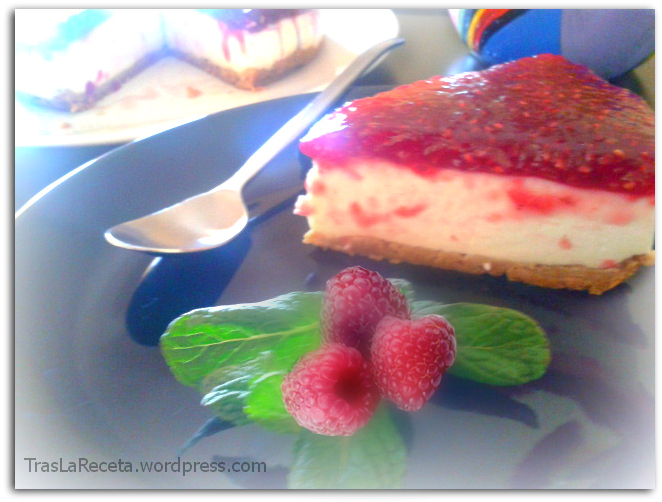 porción tarta queso y frambuesas