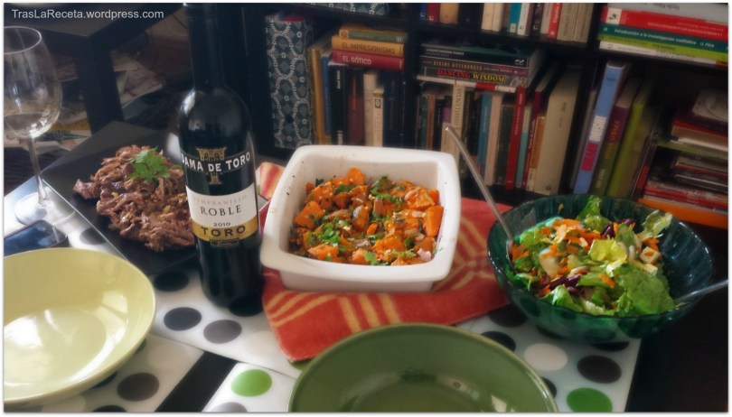 cerdo asado con batata y ensalada verde menú de celebración