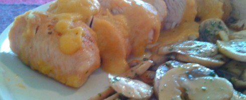 - Into the same pan heat more olive if it is necessary and cook the chicken breast strips (keep aside the wine). When the strips are cook incorporate the wine we put aside, up the heat, leave the wine evaporates, stir and you´ll see how the chicken golden. Take them and put aside before they drying or they burn. Now let´s prepare the dressing.