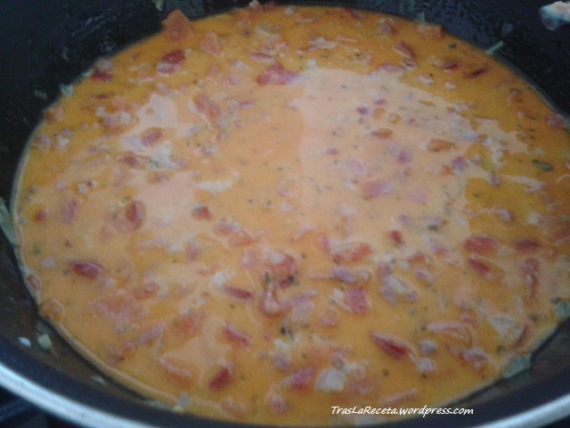 - En una cacerola (alta mucho mejor) con tapa pon todos los ingredientes a fuego más o menos fuerte primero para que el azúcar se derrita y una vez comiencen a ebullir baja bien el fuego y déjalo al menos 40 minutos o hasta que esté con una consistencia adecuada, removiendo constantemente durante el proceso para que no se pegue o queme. La temperatura que no debe sobrepasar la mermelada es de 105 grados, pero yo la verdad confío en el fuego bien bajo y el termómetro no lo utilizo. Os dejo la libertad de emplearlo quien lo tenga y lo desee.