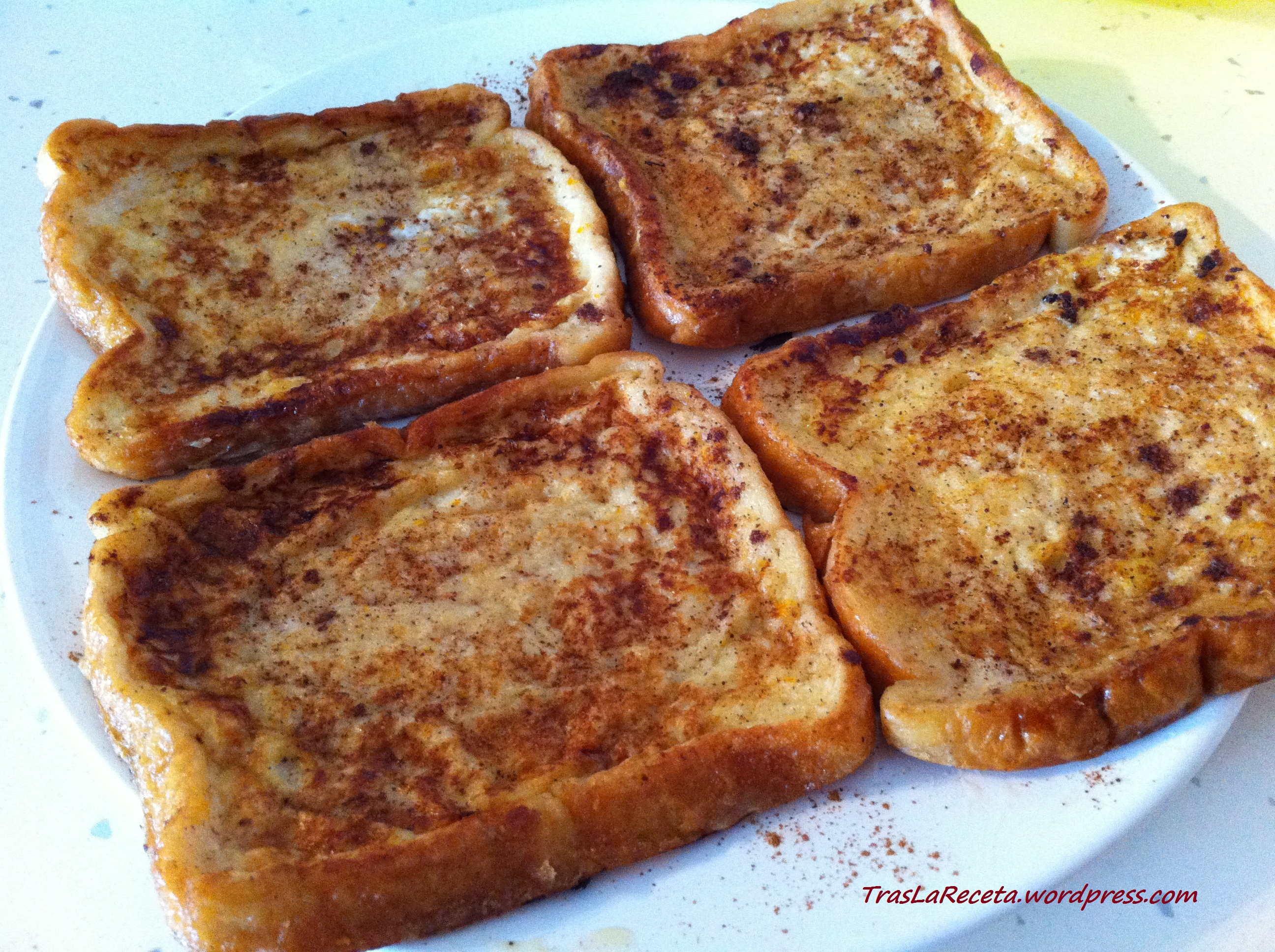 ¿Tostadas francesas o torrejas? Son mínimas las diferencias entre ellas. Las dos están igualmente sabrosas y en esencia, la manera de prepararlas difiere muy poco una de otra. Me encantan igualmente las dos, pero tengo que reconocer que suelo prepararlas más a la manera francesa, porque eso de freírlas con un poco de mantequilla, muy poca, además de darles una chispa extra de sabor, resulta ser más sencillo que freírlas en el abundante aceite caliente.